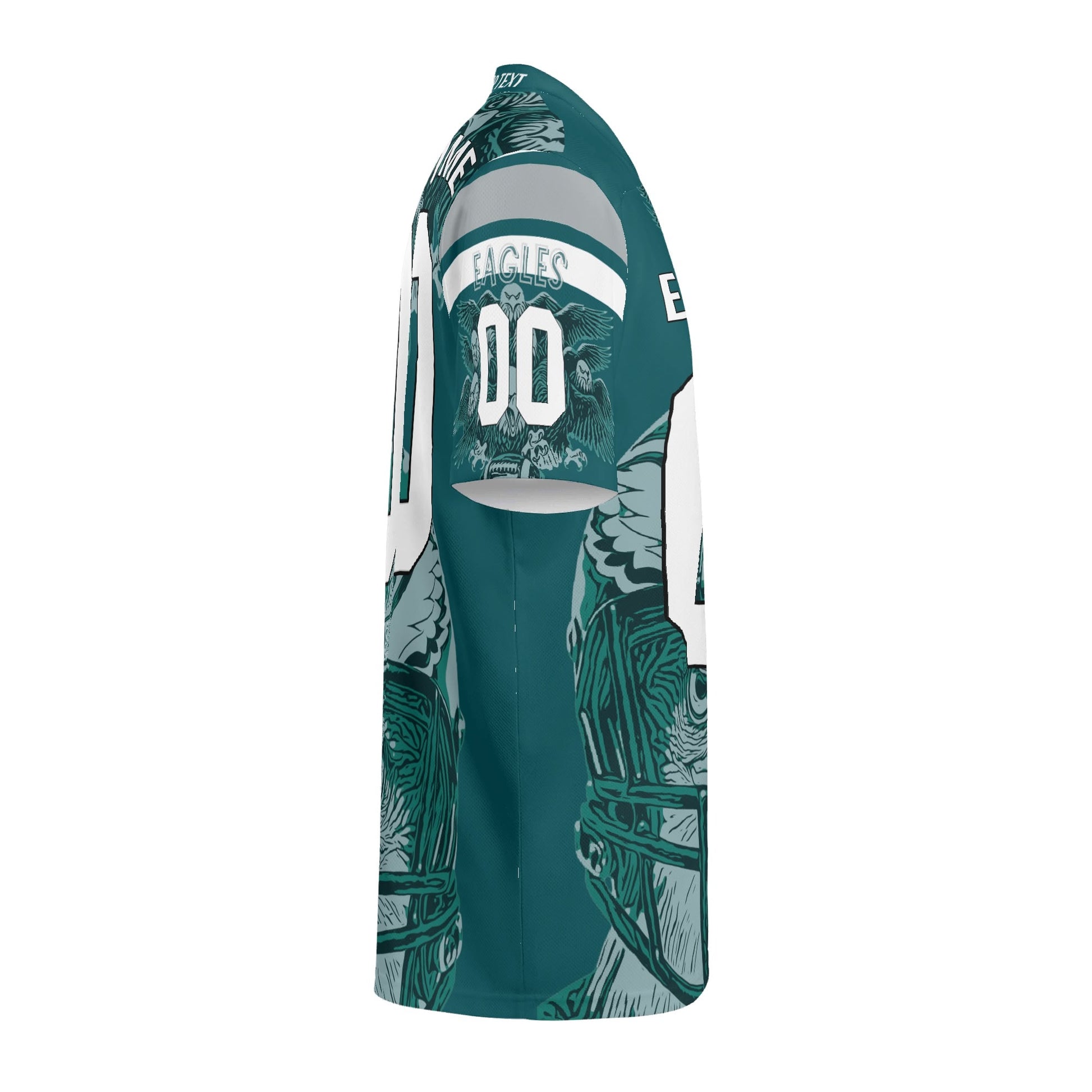 Midnight green team-color football jersey with eagle mascot styling. Add your name and number. Breathable mesh, unisex S-7XL. Made to order - add to cart today.