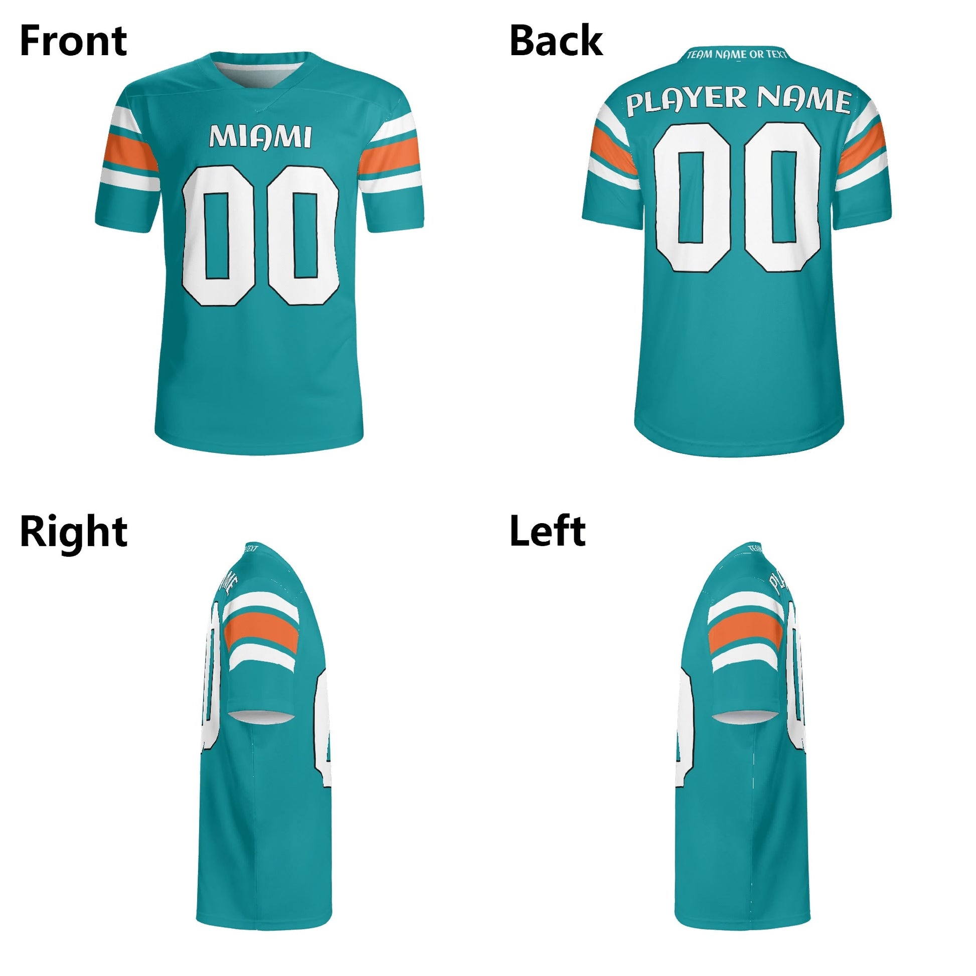 South Beach Aqua/Orange Football Jersey – Custom Name & Number – Quick-Dry Mesh
