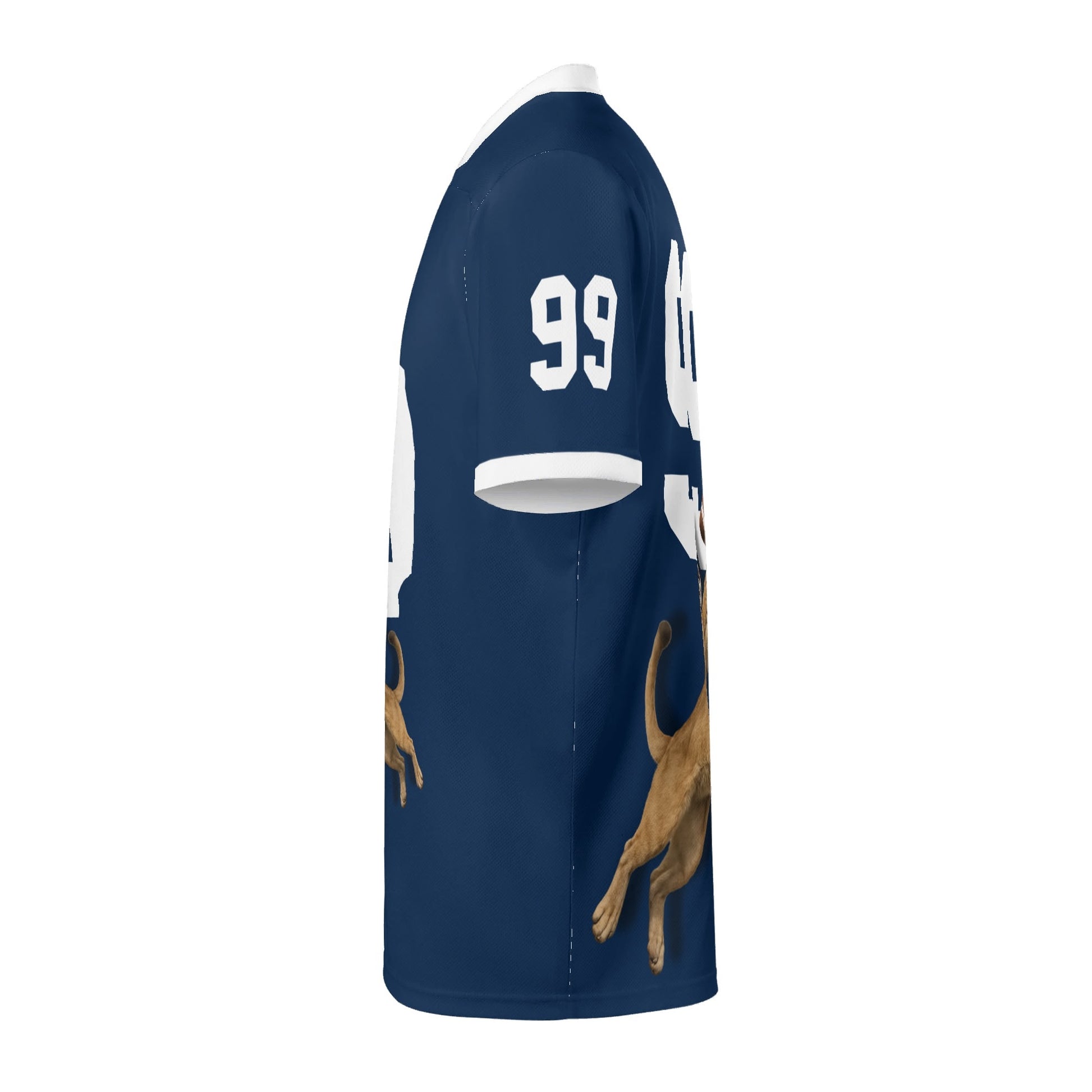 • Navy jersey with mountain lion mascot graphic and bold athletic numerals