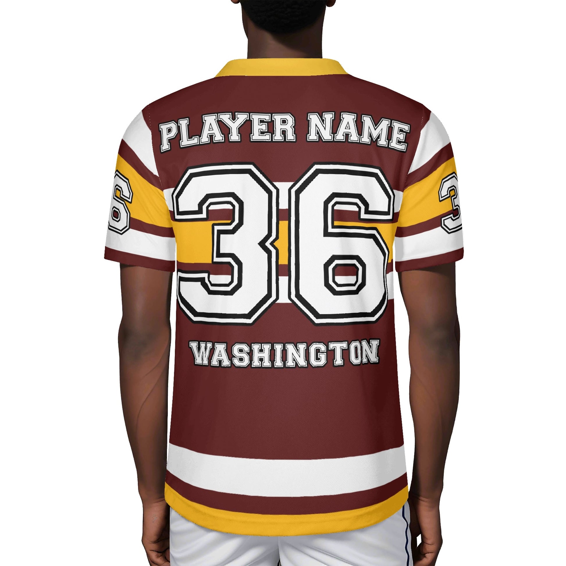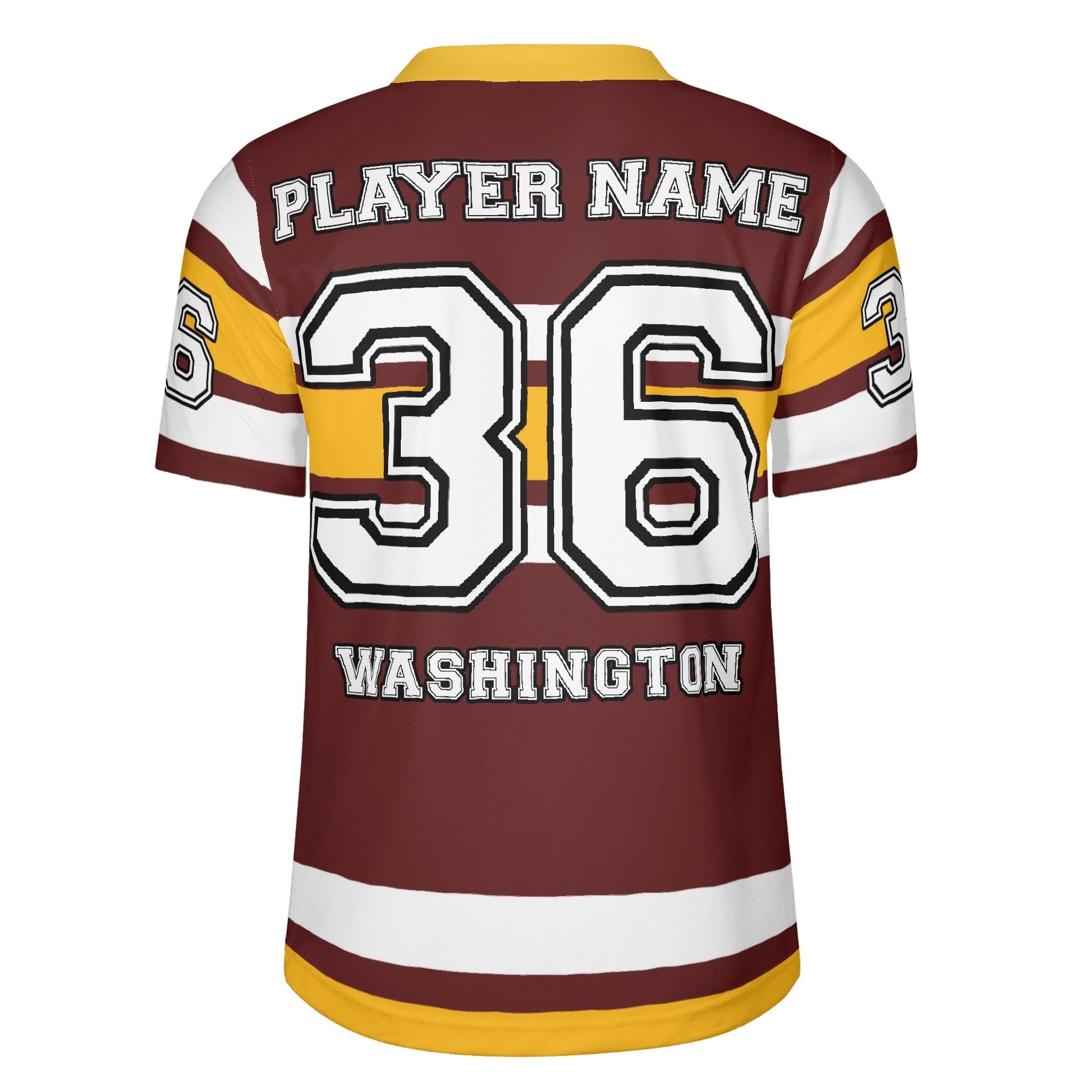 Burgundy/gold team-color football jersey with city wordmark styling. Add your name & number. Breathable mesh, unisex S–7XL. Made to order—add to cart today.