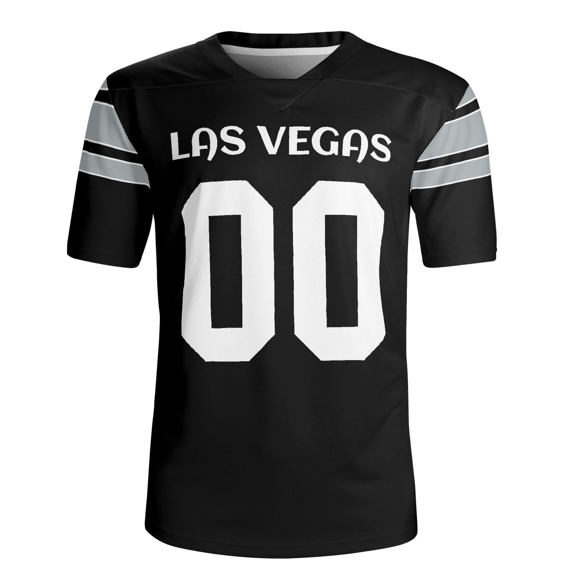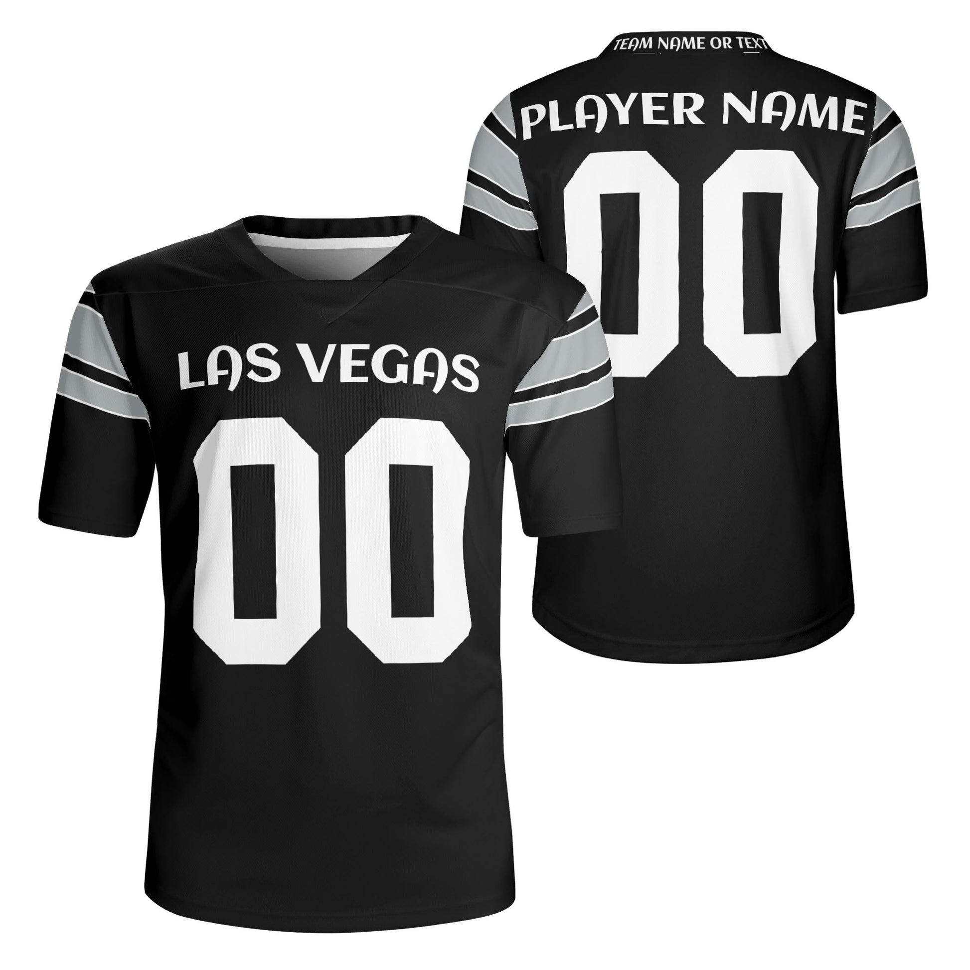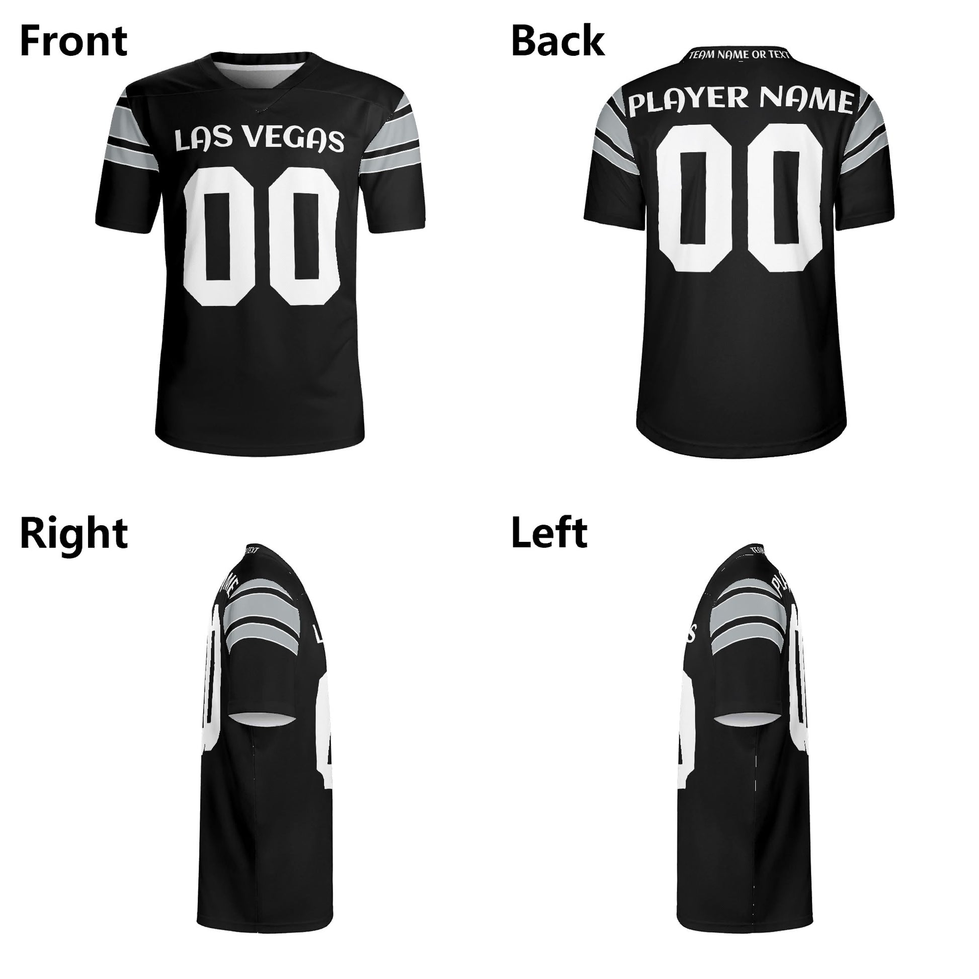 Black/silver football jersey with city wordmark styling. Personalize your name & number. Breathable mesh, unisex S–7XL. Made to order—add to cart today.