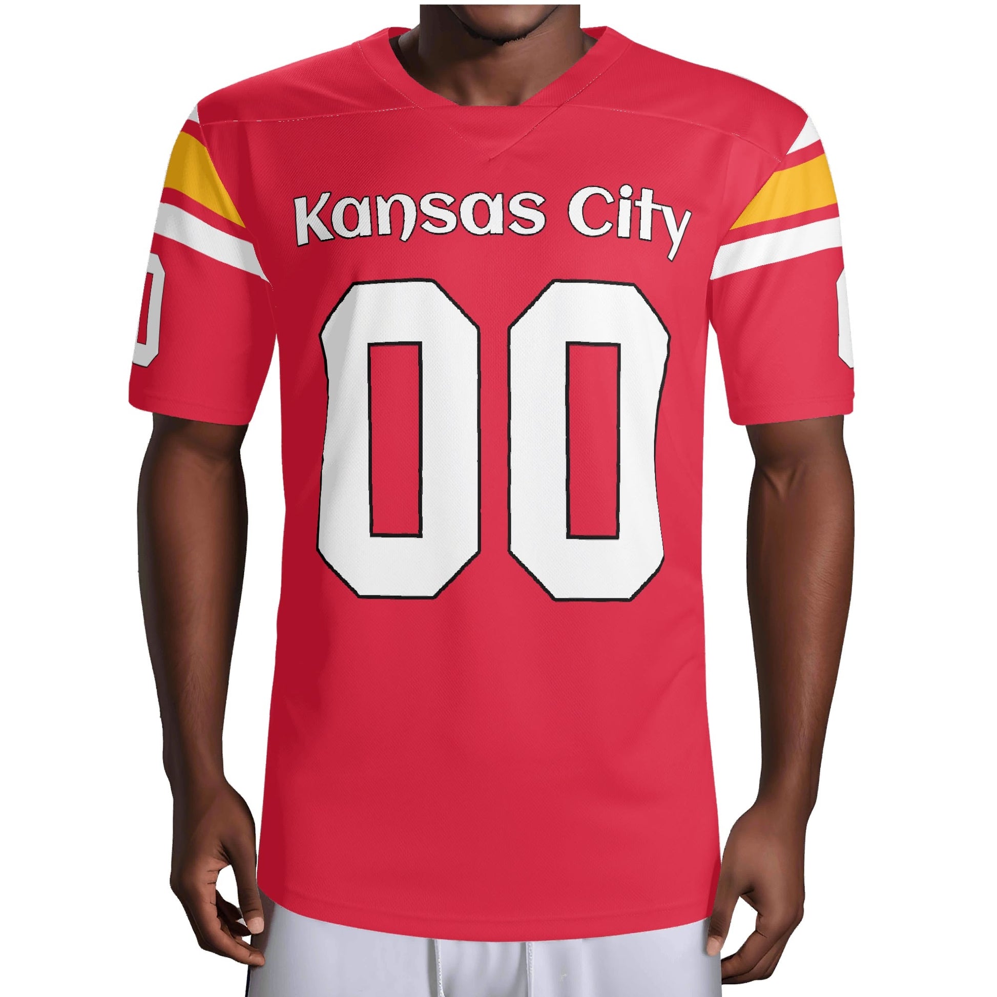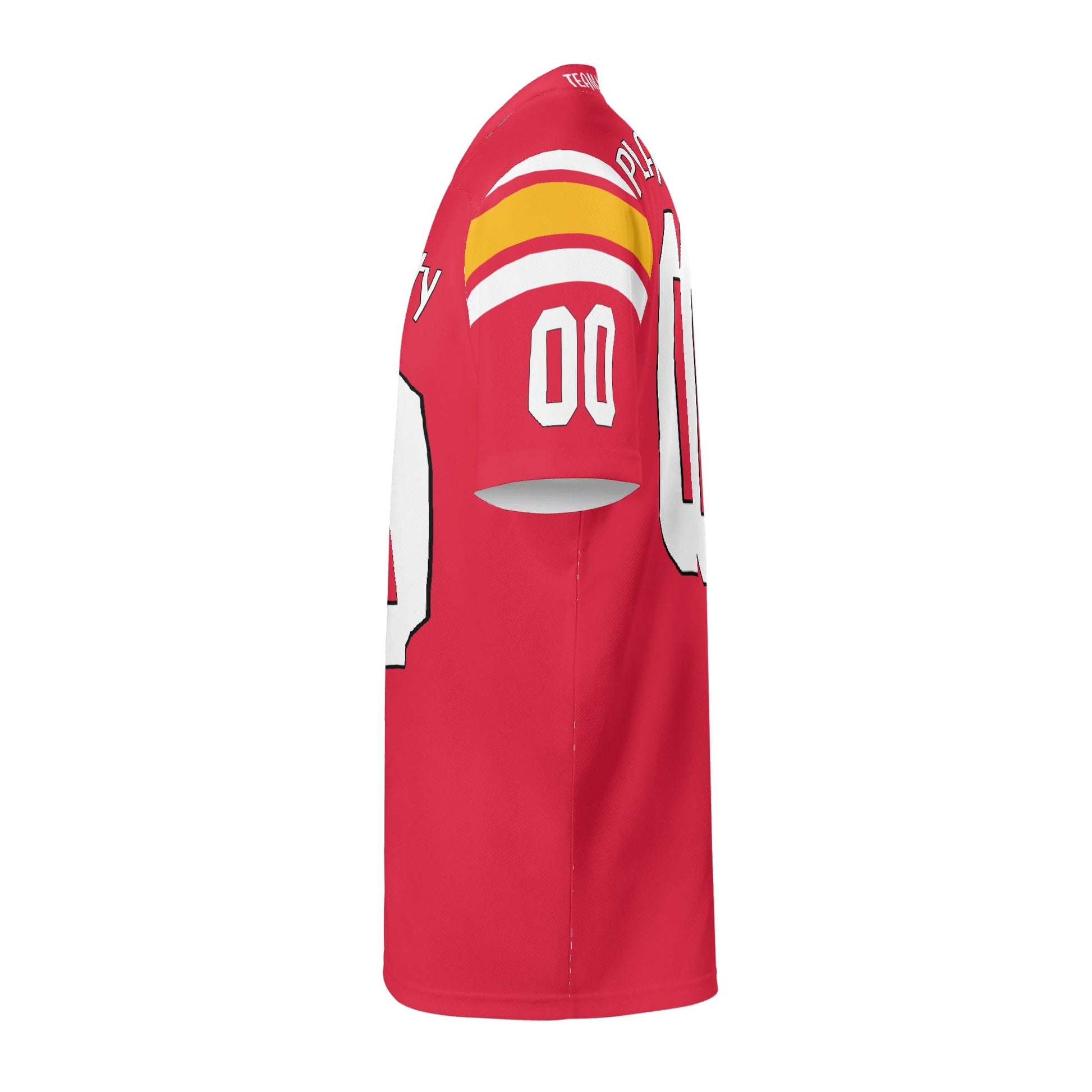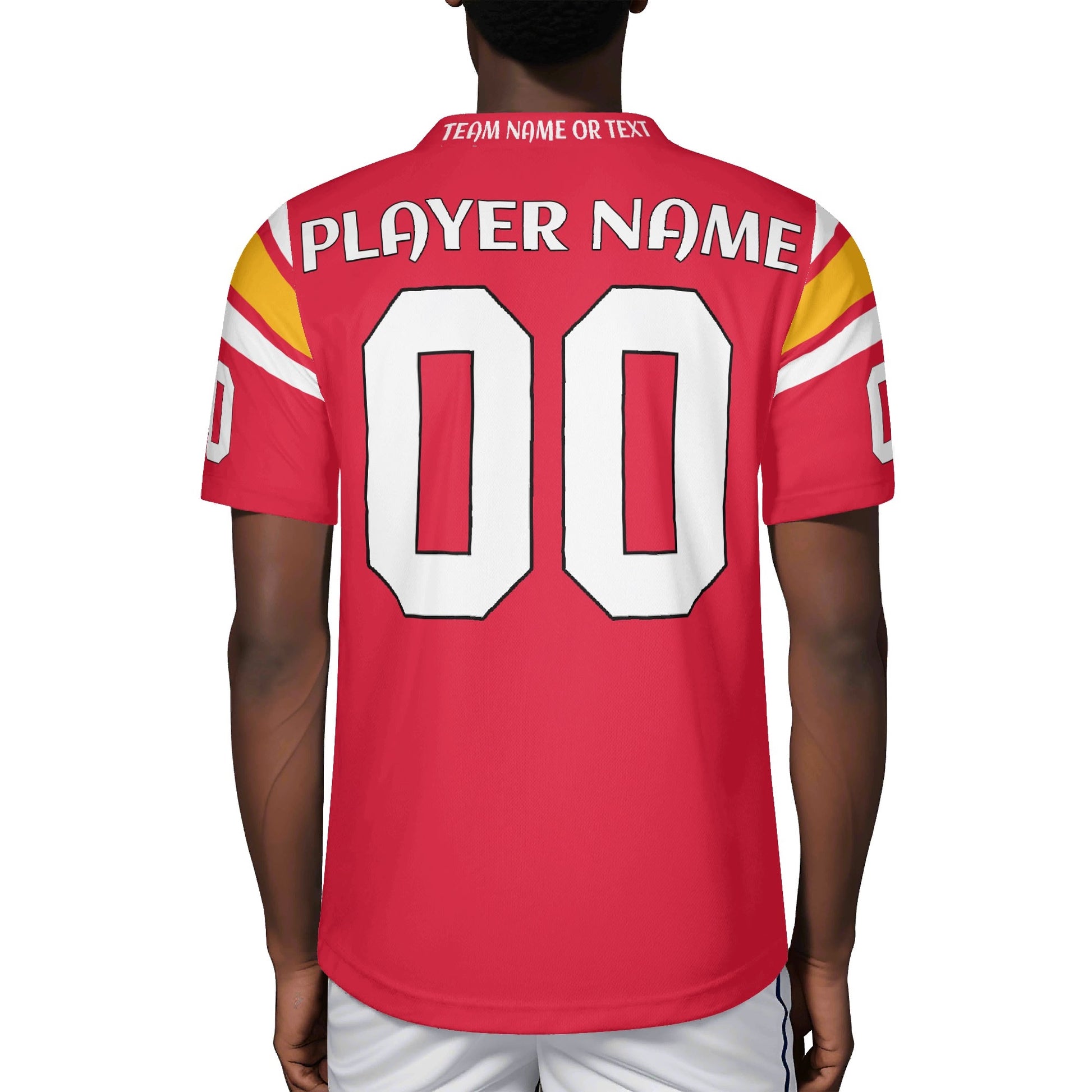 Red/gold team-color football jersey in breathable mesh. Add your name & number. Unisex S–7XL. Made to order—add to cart and gear up today.