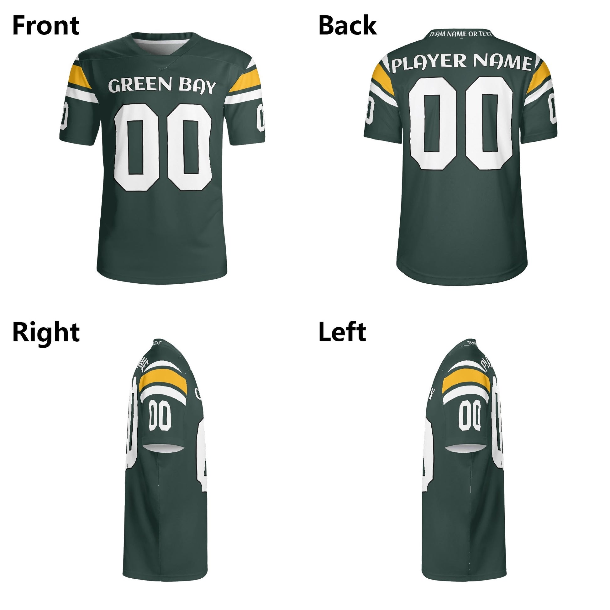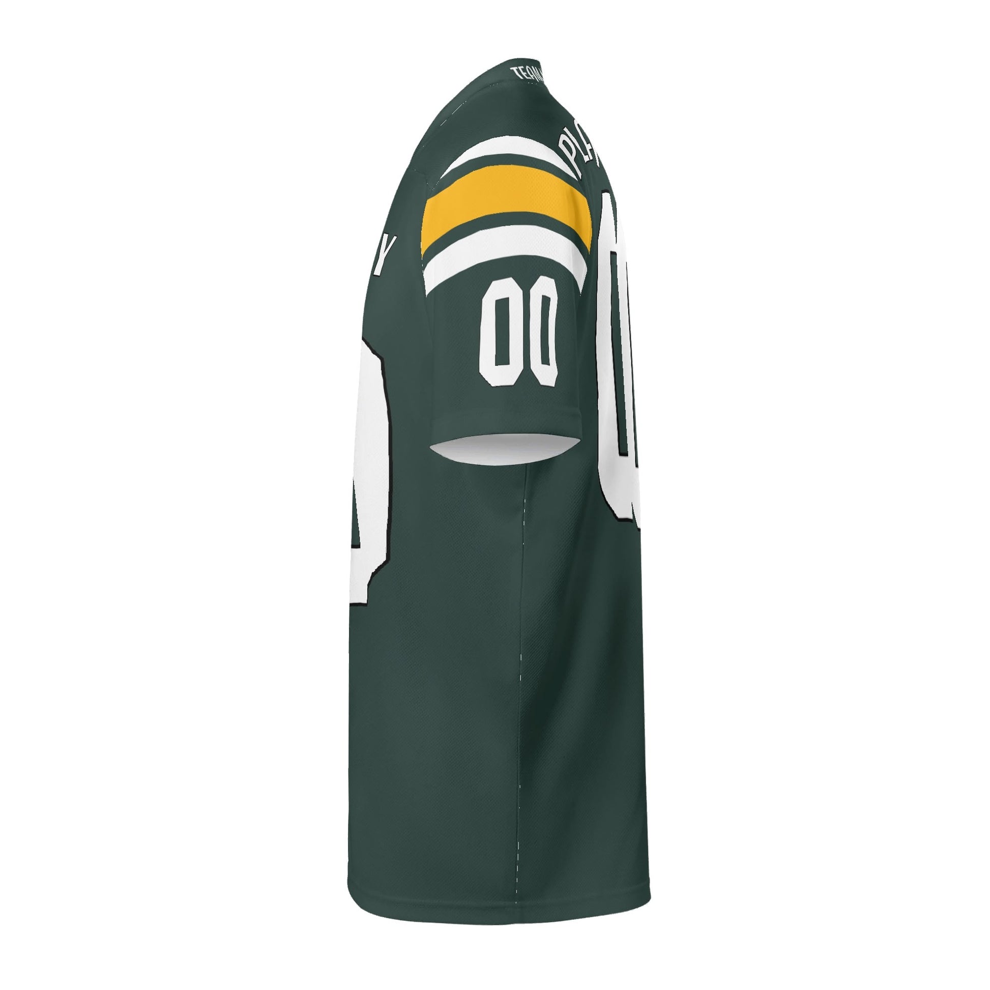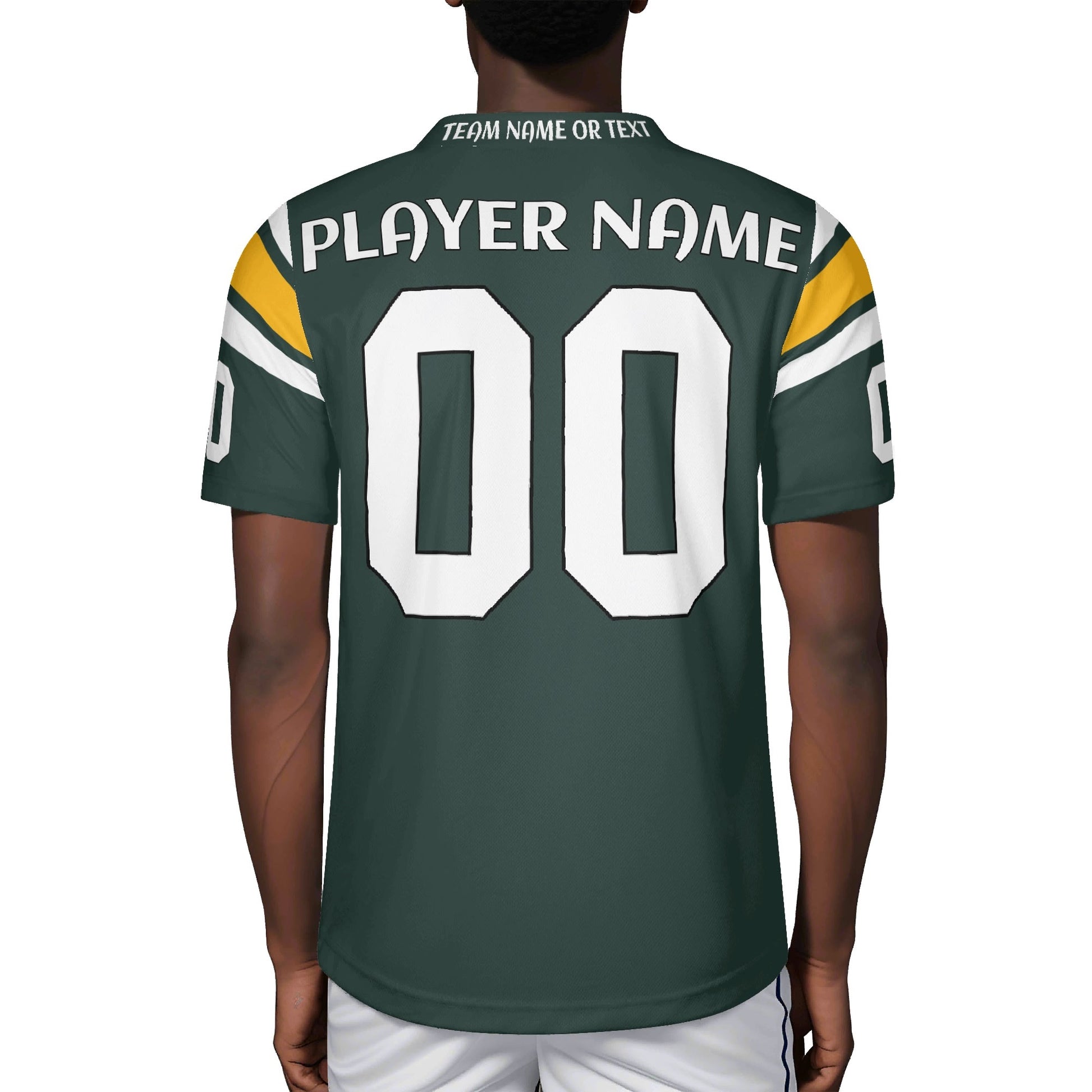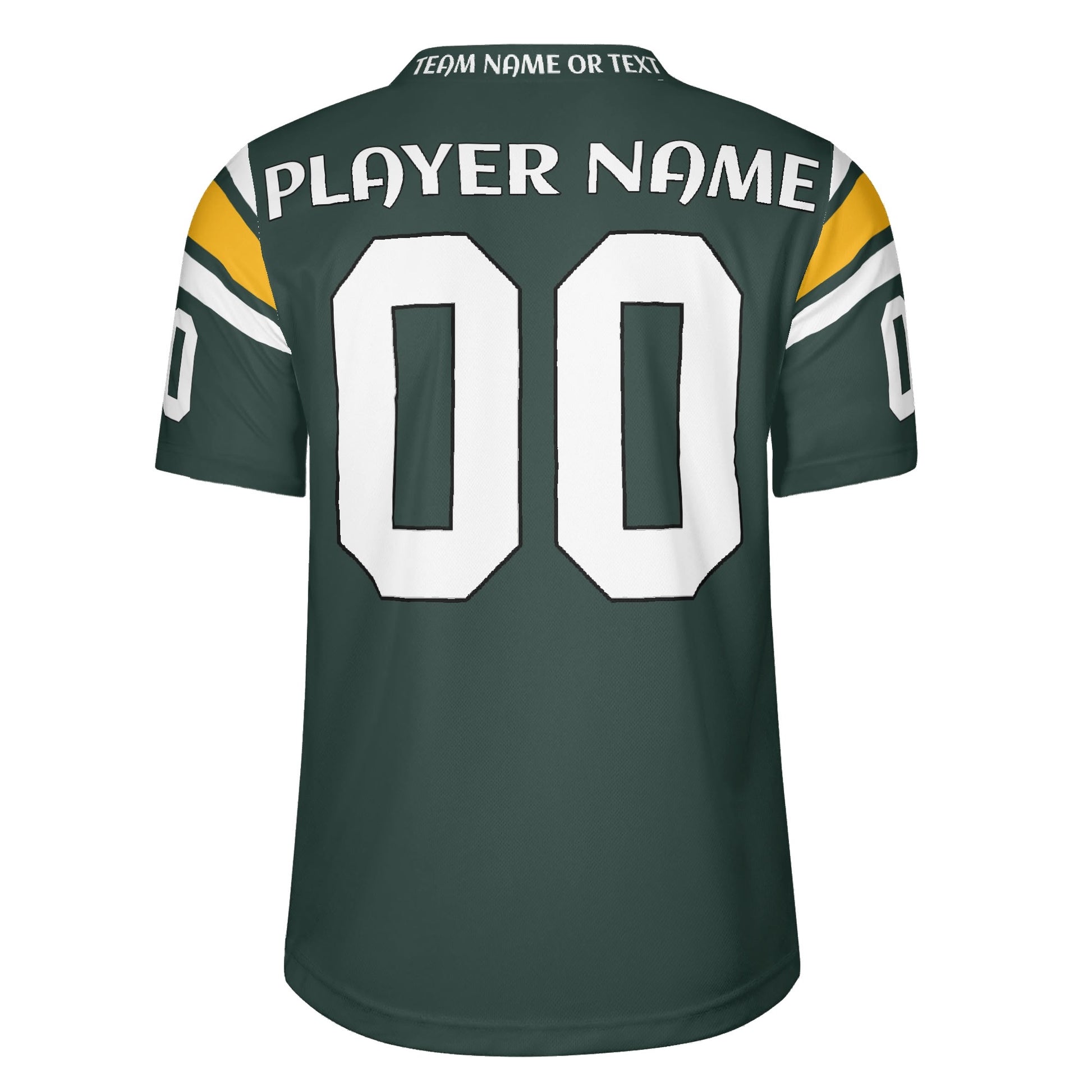 Green/gold team-color football jersey in breathable mesh. Add your name & number. Unisex S–7XL. Made to order—add to cart and gear up today.