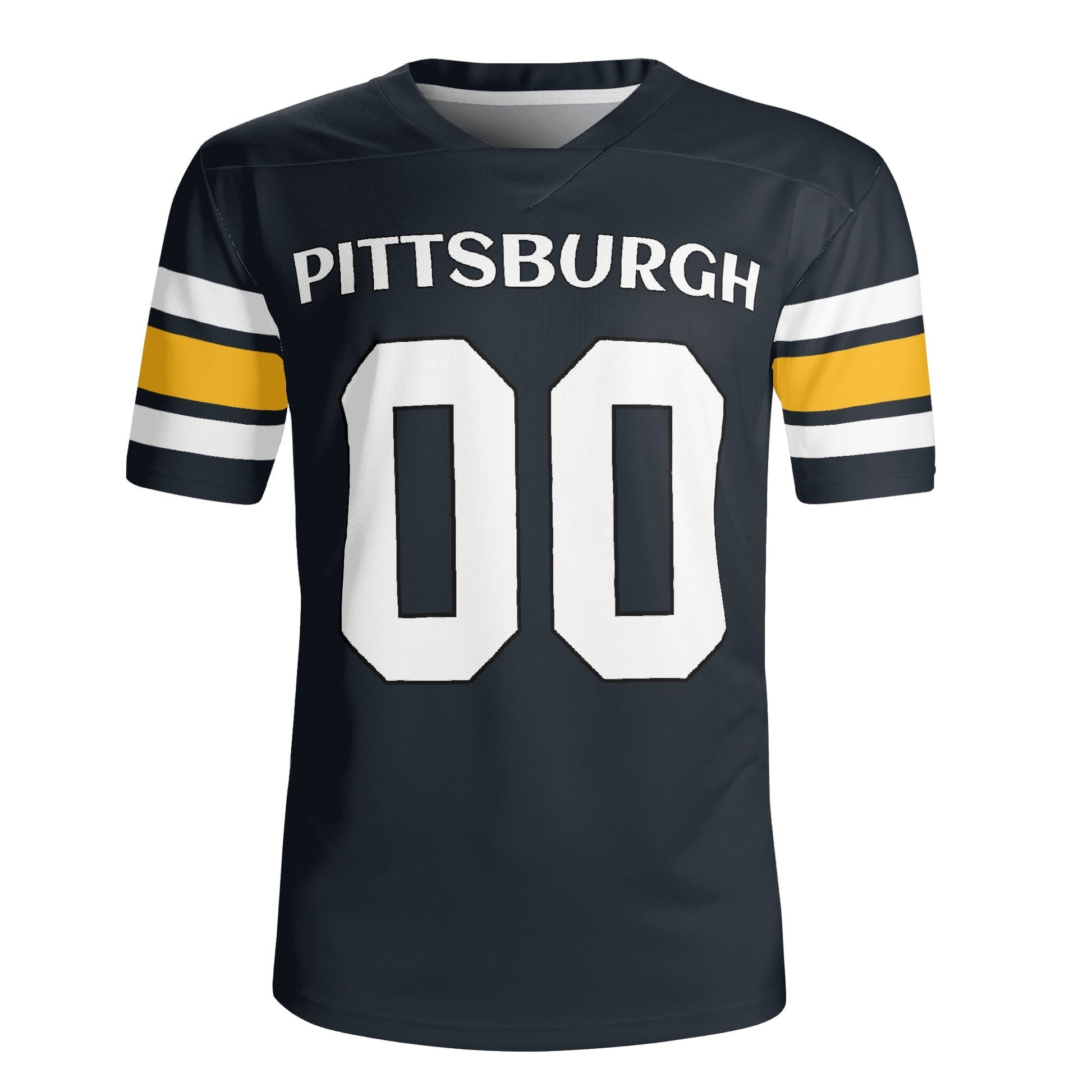 Aggressive black/gold football jersey in breathable mesh. Add your name & number. Unisex S-7XL. Made to order - gear up today.