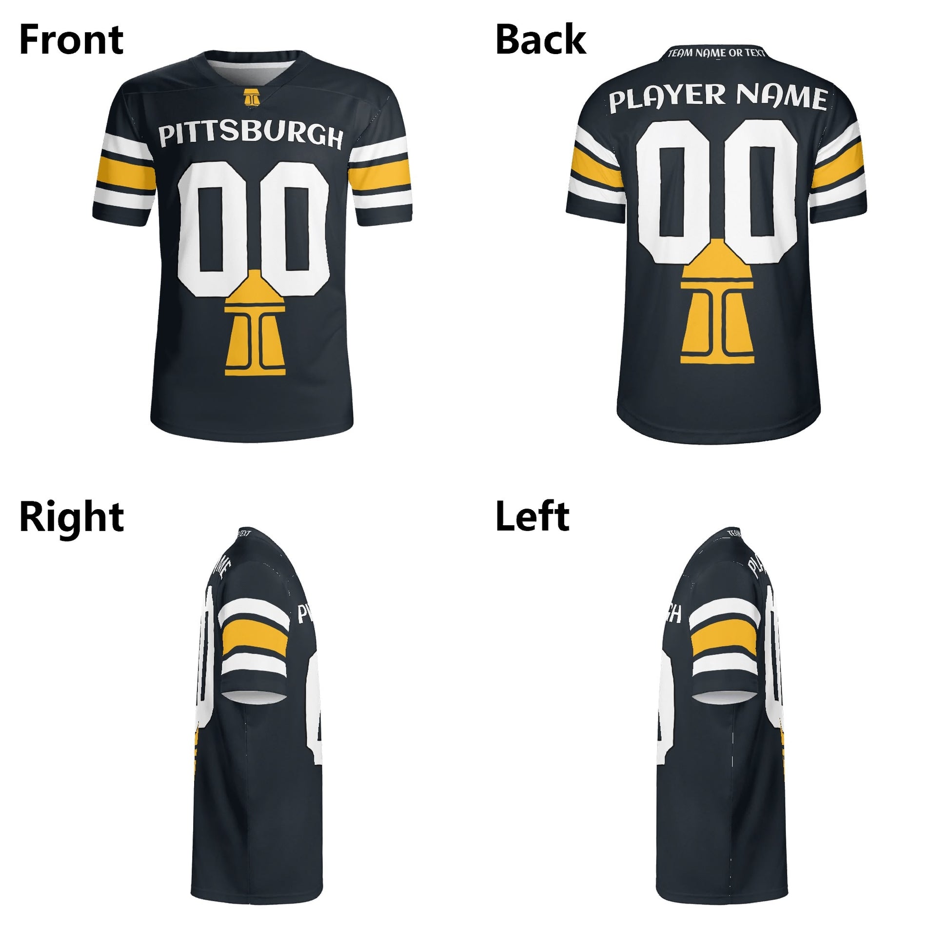 Black/Gold Football Jersey – Custom Name & Number (Steel City)